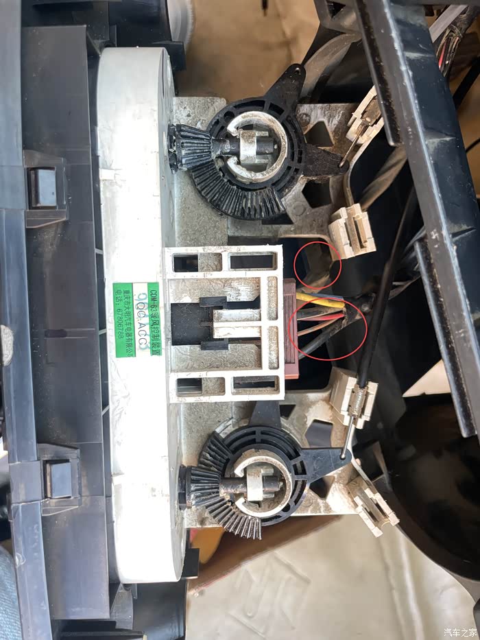 这个空调面板背面两个线束的插头位置,给大家看看……