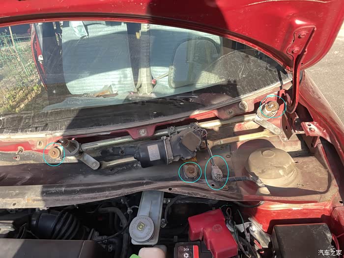 圈中的螺丝拧掉,再拔掉线速那个头,雨刷器就掉了。简单,螺丝生锈就喷点机器油,一般家里有缝纫机都有,哈哈!说实话,我发帖写到这里,都已经发不动了太多,呵呵,每天发点儿,