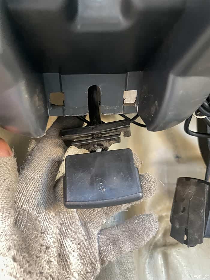 座椅往前推,手刹后屁股有塑料扣,我直接暴力弄掉了,另外一边儿还有一个……