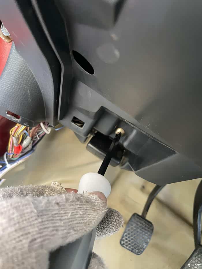 往外放心的拉吧,很轻松就下来了,但是要注意我拴塑料条那个线束,从底下慢慢拿掉,看下图……