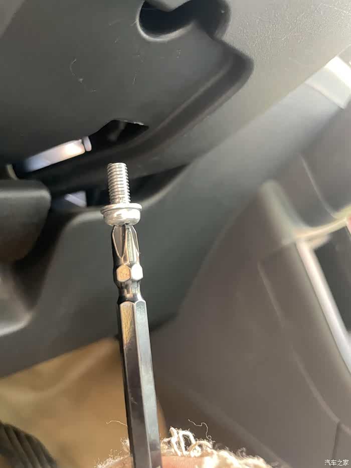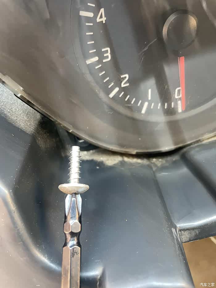 拿掉仪表后,这里有两颗这样子的螺丝,拧掉入盒。接下来拆挡风玻璃下面小表……