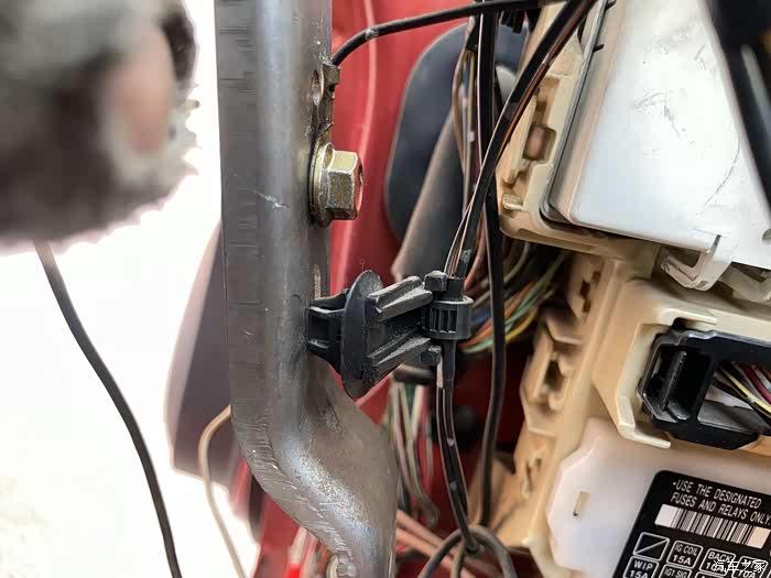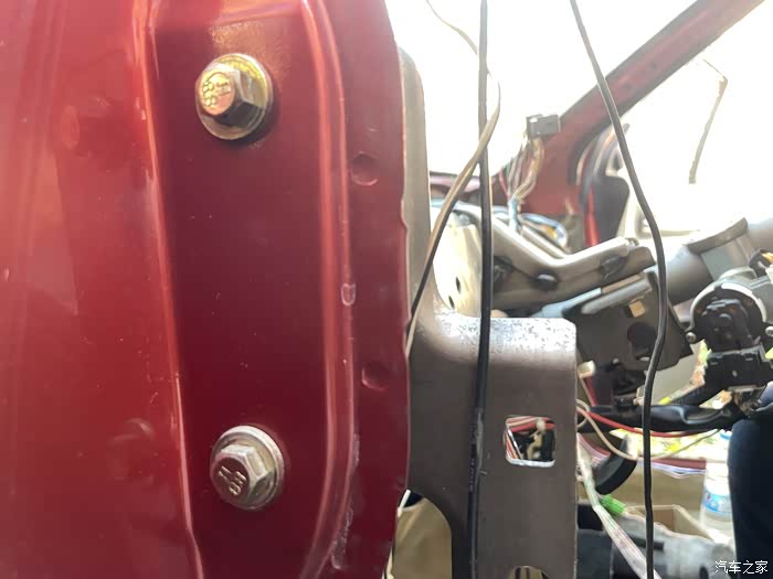 挨着车门侧的机盖拉线开关上面的螺丝,拧掉放盒。顺便我就把门槛护板扣掉了。