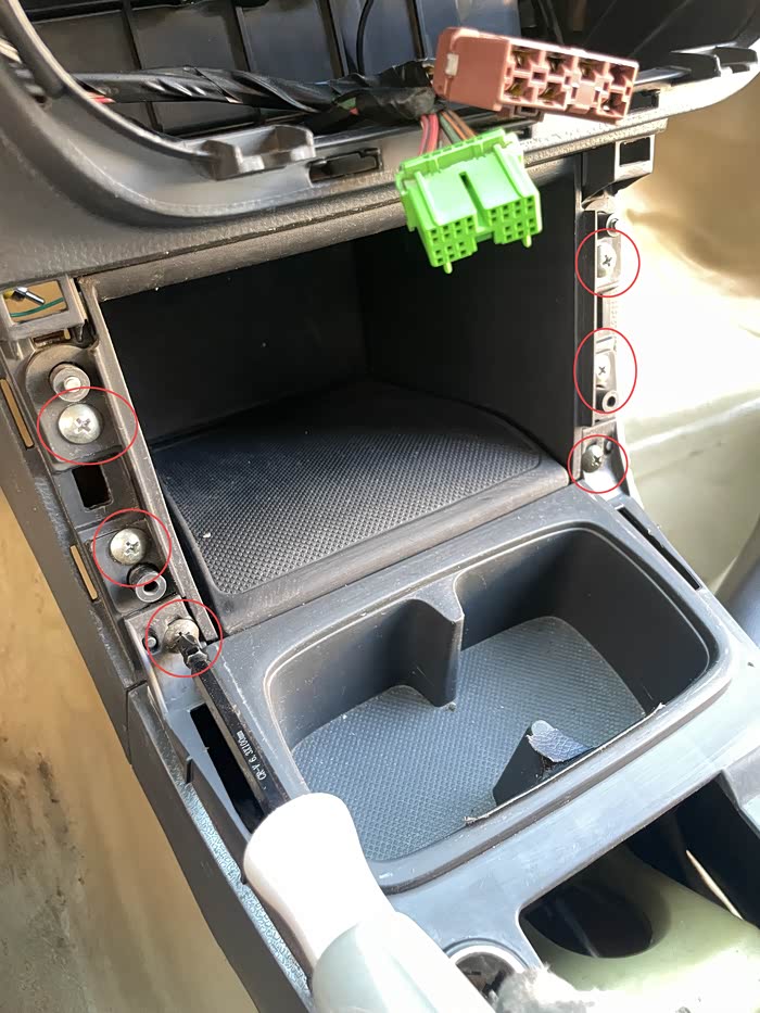 只拆掉上面红圈里那颗螺丝就行,下面三个不用拆,会随着总成盖一起下来,不用管,不要问为啥,因为我拆了又安上了,浪费力气。接下来中间多媒体拆卸……
