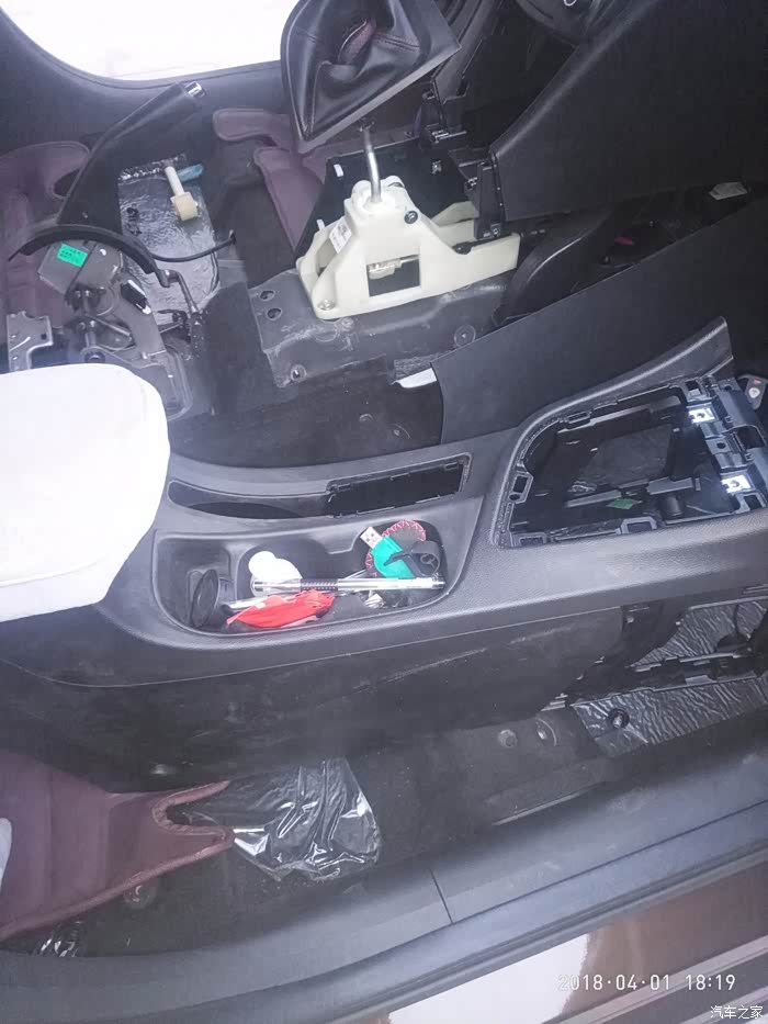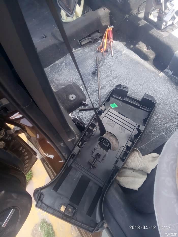 把副驾驶座椅拆下来后内饰板还是拿不出来,随后把主驾驶座椅也拆下来了,车顶棚还是拿不出来,继续拆中间扶手箱