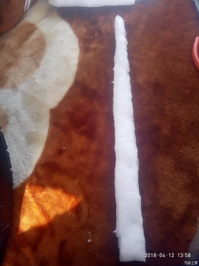 按车顶的形状裁剪好吸音棉,初步计算了一下艾五车顶用50*80的吸音棉大概4块