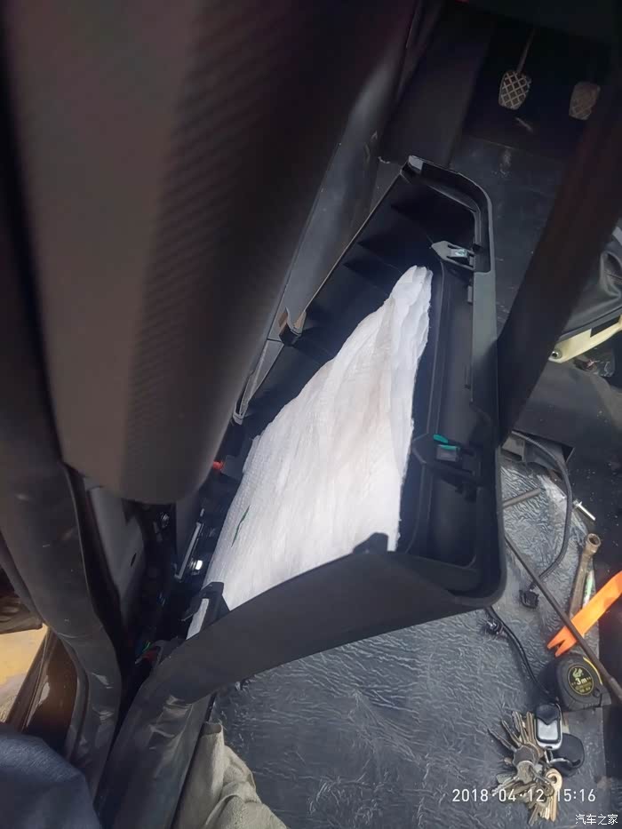 本以为拆完以上就可以轻松的把内饰板拆下来,可内饰板卡在两个B柱中间纹丝不动,又不想折坏车顶内饰板,继续拆下左面B柱护板