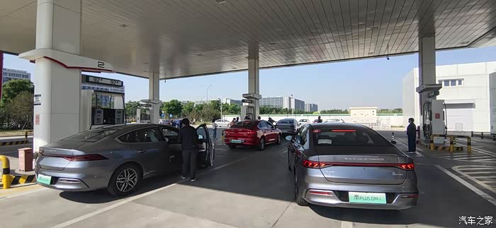 为避免加油误差,采用的同油站、同油枪、同操作人员进行加油。大伙儿正有序排着队呢~