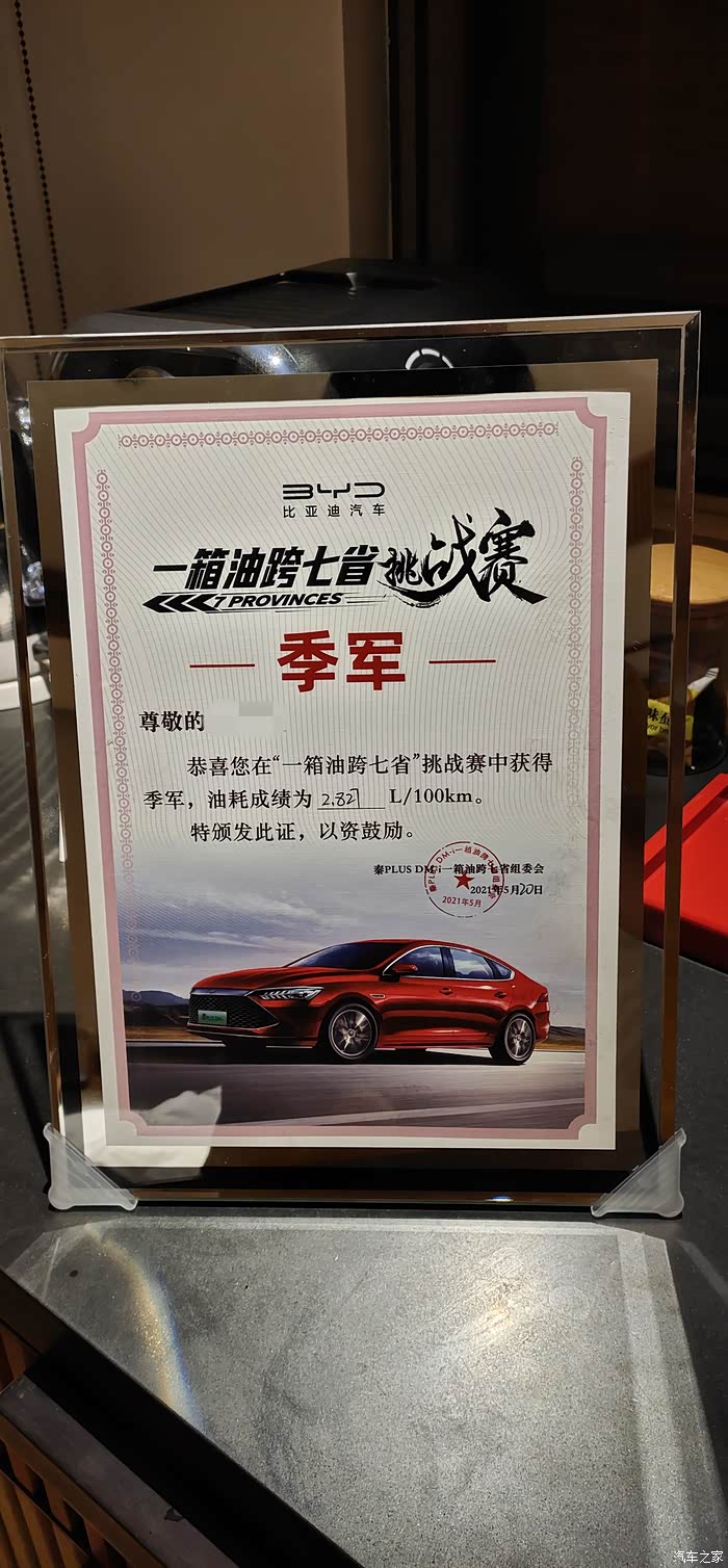 最后以2.827L/100km的油耗获得了季军,距离第一名2.66L/100km还是有点差距的。
