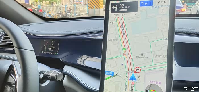 几乎每天行程结束时都能碰上下班高峰期,我们的路程大概高速占90%左右,市区道路占10%。高速平均时速控制在80左右,市区时速是能快尽量快,但是加速需平稳忌大脚油门。同时将能量回收设置为较大,尽量做到少刹车。