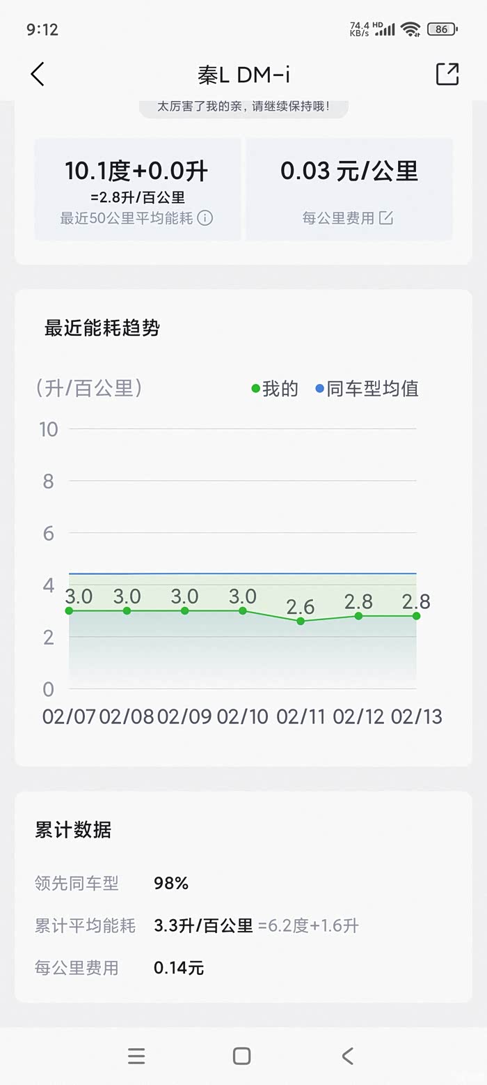 我有一台2006款1.4L波罗劲取,车龄18年,行驶里程近30万公里,多年内没有出现什么大问题,车况总体良好,本来打算继续使用,但今年4月份开始,空调出现了不制冷现象,去4S店检查后,说空调泵漏冰种,如修理需化2000多元,且因车辆使用时间较长,中控台板老化,拆开后可能会碎裂无法复原,厂家又不生产了此配件,建议我加冰种试下,我就加了些冰种,制冷效果又与原来一样,可只用了两个月不到,又不制冷了,回4S店检修,告知还是老问题,建议我不如考虑换车,说车龄较长,好多零件都会老化,后期出现问题的机率也会越来越多,对安全也没有保障,我听后觉得有道理,同家人商量后,他们也建议我换车,经过一番了解后,目前国家有政策规定,可以将旧车报废后置换新车,置换燃油车国补有1.5W、新能源车国补2W,厂家还有一些,我觉得都比较合算,是换车的时候了,经深思熟虑后,我就决定换车,开始时我还想继续购置上汽大众的车,因为曾经用过,感觉质量可以,后来咨询朋友和同事们,大部分都说新能源车都可以考虑,他们当中也有的人在用新能源车好几年了,总体不错,我与家人商量后决定入手一台新能源车。因自己对车辆方面没有什么研究,也没有在网上花时间去了解,觉得身边的朋友、同事正在用的以及道路上跑的新能源车中,比亚迪品牌的比较多,我就想能得到人们认可,拥有量多的应该不会错吧,于是在6月22日上午,我就与老伴直奔当地一家比亚迪4S店,销售员热情地接待我们,我就直奔主题,问有无最新款的车辆,店员说有,他们说有一款5月底才上市的秦L,有五种配置,可油可电,满油满电的情况下可续航2000公里,店员边说边带我们到车傍边介绍,当我第一次看到秦L这款车时,给我眼前一亮的感觉,觉得这款车外型大气、帅,我就围着车辆周边观看,然后进入车内细看,觉得外型、内饰、配置都不错,价格从9.98至13.98万元之间,我就说不知道性能如何,店员说可以试驾,于是立即带着我们去试驾,当试驾完后,我一下就喜欢上这款车了,无论动力、操控性、平稳性、舒适性和隔音都比我单位的汽油车和我那台旧波罗车好开太多了,性价比很高。回到店后,店员问我是否中意这款车,要不要再试驾其他车,我就说不用了,就这款,俗话说买旧不如买新,又无续航焦虑,于是经对比立即下订了秦L120Km领先版,前后耗时不到2小时,就确定入手这款秦L了。记得当时与店员讨价还价,一分钱都无得优惠,车身价11.98W,保险5500、上牌1000元,自费2300元安装充电桩,送脚垫、太阳膜,再没有优惠了,还要等大约两个月左右。我心想,反正有车用着,那就耐心的等吧。到8月21日,店员来电话说车辆已到店,让我将尾款全部付清,提供相关证件办理上牌入户手续,于是我就立即申请在自家车位花2300元安装了充电桩,8月27日提车回家后马上给爱车充电,当时余电45%,充电耗时一个多小时后已充满,截止目前已用车百多日,累计共消费电费130多元、加92汽油109升,消费793元,目前余40%油量(约26升)行驶近5500多公里,平均每公里0.14元,总体感觉良好,在5000多公里中,高速行走里程约占1/3(时速约100左右)、快速路行走里程约占1/3(时速约60至85左右),市区行走里程约占1/3,主要是上下班来回20多公里,双休日出去玩玩。