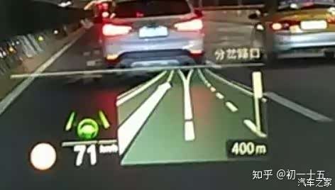 选择好路线开始导航后,HUD上就会有行驶方向提示,表明导航调用成功除了显示路线缩略,在路口还能显示车道信息,快到叉路时还有叉道提示。