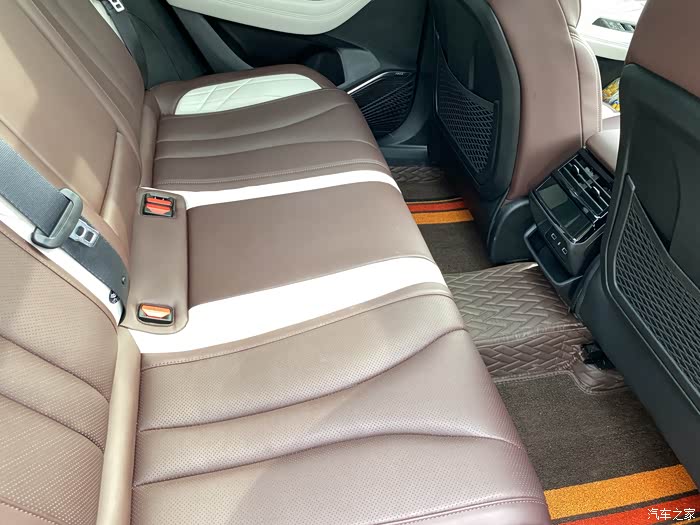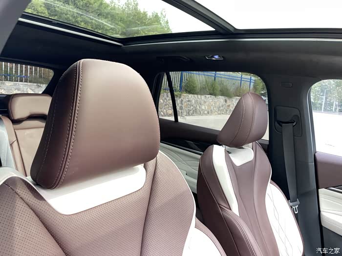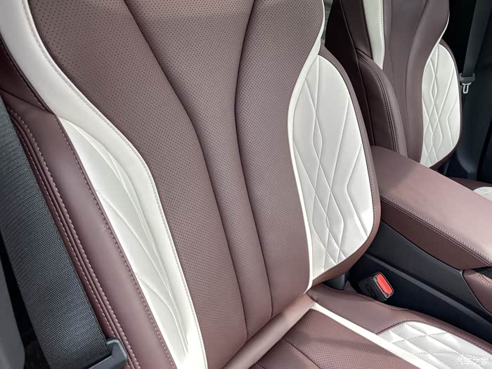 坐在车子里面,给人的感觉就是宽大且舒适,这座椅采用了棕白相间的拼接处理,看上去视觉观感良好,而且做工精细,用工扎实,摸 上去手感很好,坐在上面,座椅对身体的承托性良好。