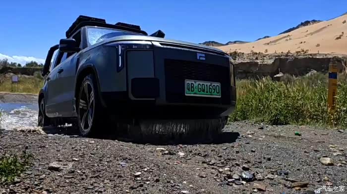 极石01的官方涉水深度达到了70CM,一路上沿着小溪可谓有惊无险吧,最深的地方个人感觉车已经有漂浮感了,但依靠极石的强大动力冲过去了,说心里话,这里不建议普通城市SUV或其它增程电车来。沿着这条小溪开到景区最深处,还有再遇到那个陆巡车队,他们正在点卡式炉烧水煮茶。看到我的车竟然进来了还有些小惊讶,在看到我打开极石的小厨房泡茶时候表情又有点小酸。