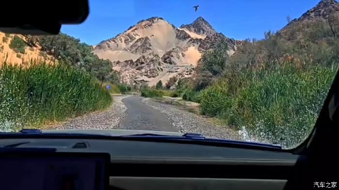 多坝沟胡杨峡需要从敦煌向青海方向来到阿克塞,在从阿克塞向西走大概100多公里无信号公路才可以到达。虽然信号不好,但一路上都可以看到阿尔金山的雪山,风景还是很棒的。需要注意的是公路上很多地方都会有沙子覆盖,开车的时候一定要小心打滑。极石01的四驱系统在这种单边过沙的路况上表现还是非常稳健,稳稳的把我带到了目的地。