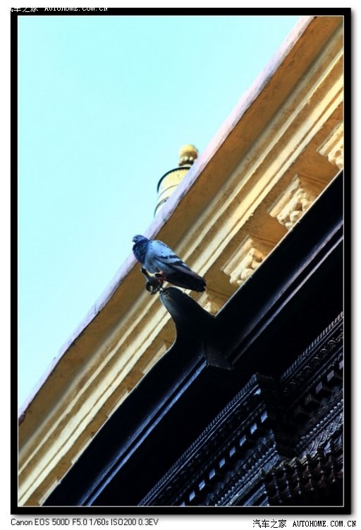第二天清晨,闹钟尚未撕声裂肺嚎叫之前,我已经被悦耳的鸟鸣声唤醒。这里是泰米尔区,加都最繁华的游客聚居地。如果不是拉开窗帘看到眼前堆积的各色建筑物,已然错觉自己是露宿在森林公园里。旅馆的外围墙上驻足着若干只不同种类的小鸟,其中最引人注目的是硕大的乌鸦。虽然在当今的国人心目中乌鸦普遍被视为不吉祥的鸟类,但在古代曾被称作金乌,是太阳神的象征。自古便有月中有兔,日中有乌的说法。乌鸦还是那个乌鸦,不同的时代背景,会对相同的事物产生截然相反的评价,历史不可捉摸,政论不可捉摸,正如人心不可捉摸一样。不过尼泊尔的乌鸦和国内的乌鸦貌似确有不同,前者的头部呈现藏青色,比国内所见漆黑一片的单从外表上来说比较容易产生好感。只是不能张口,乌鸦天生就是一个五音不全的跑调高手,原本极为完美的众鸟小合唱,只要有了它的加入,啊、啊两声,马上韵律全无。
