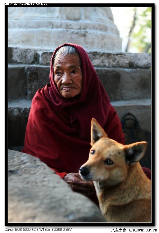 猴庙中乞讨的老人与狗