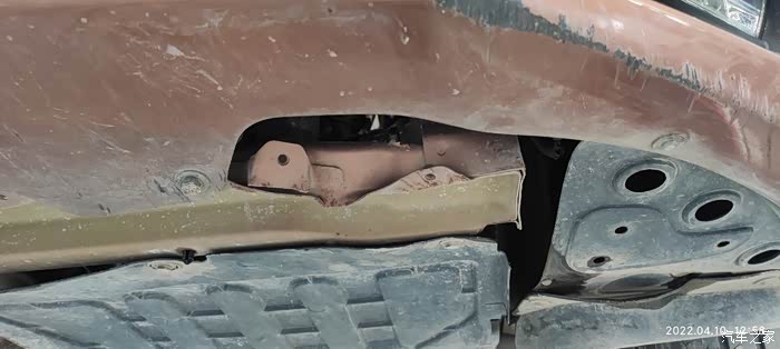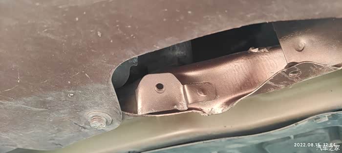 这是今年4月10日小三去保养时的照片,车头左前方这个地方被撞了几次,都变形生锈了