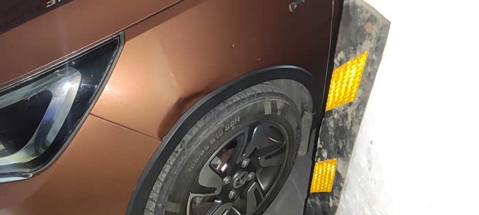 我问她擦对车子哪个部位,她说是左前轮上面的铁皮上。原来是翼子板,我就说问题不大,等我回家再说了。