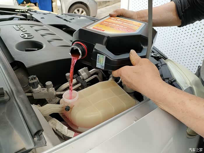 更换就在路边店换的,这也不是什么高科技,把旧液放完加新夜就可以了,原车的防冻液经过14年10万公里的使用,放出来看着还是很清澈的,只是颜色比较淡了,总共使用了一大桶加2\3小桶(总计使用4.5升),还富裕一小桶,给修车店了。还完后怠速试车接近半小时,期间为了让水温起来,还加油门到3千转一段时间,这个半小时期间里以及第二天早上的试车,冷却风扇都没有启动,水温正常,看来更换防冻液还是有效果。