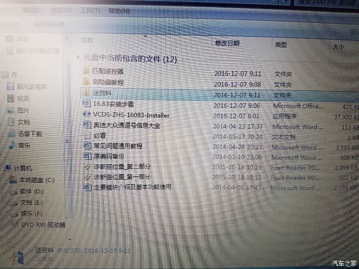 从上个月提车之前就开始关注迈腾论坛,前些天看见了有车友用5053刷隐藏功能,便一发不可收拾。正好一哥们儿那里有一条5053线,网上下载VCDS,数据线连电脑,因为之前功课没做足就着急试验,结果——线的固件版本太低,一下就锁了,当然开始是不知道线烧了,各种版本的程序轮番下载安装,什么11.11,12.12,16.83,17.13全部试过,惭愧啊!之后就开始上网查资料学习,想把5053线的固件升级修复,又是看教程,又是看图片,又是接线,把各个版本的固件又都折腾一遍,最终还是以失败告终。看来我是高估自己了,没办法,求助某宝吧,搜到一家销量不错的下单16.83版本,据说在2016款迈腾上可以匹配,昨天收到货天色已晚,今天一大早就迫不及待的拿过来研究。现在上作业,光线问题图片不是很清楚,我这也不是教程,因为我也不太懂,我是根据卖家给的教程结合坛子里的车友作业弄的,还别说,小有成就!折腾无止境,欢迎大家顶!