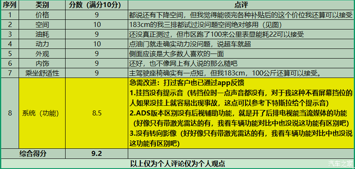 车子就没有十全十美的,优点就是因人而异,但缺陷咱必须得提。请见下表