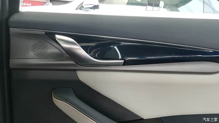 金属网面的扬声器质感不错,蓝灰相间的皮质座椅摸着也很舒服。
