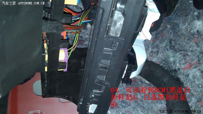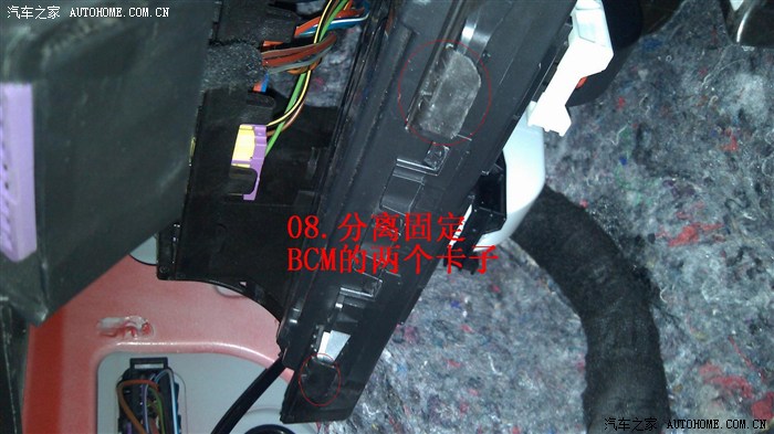 躺在左前门槛上,就能看到BCM上的A(黑),B(白)两个插头和下侧的两个卡子。