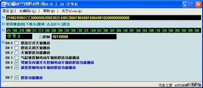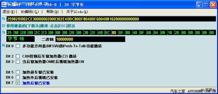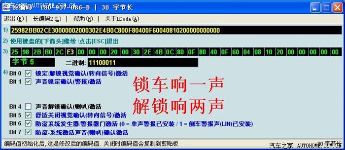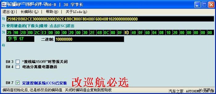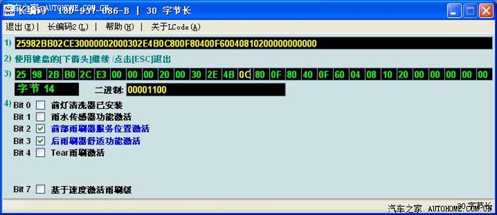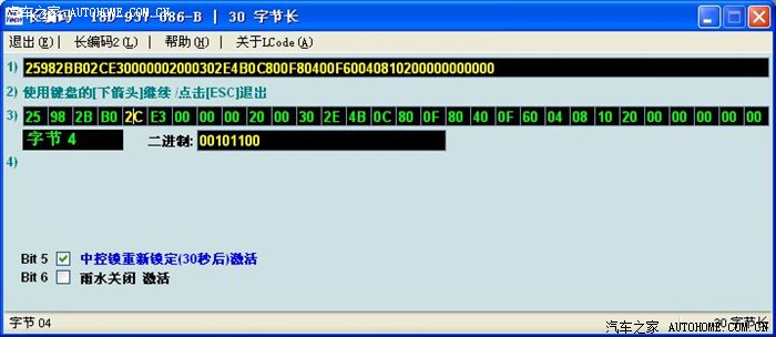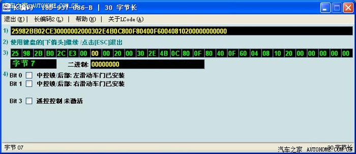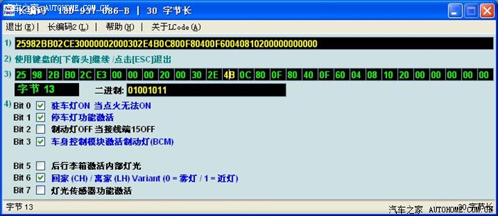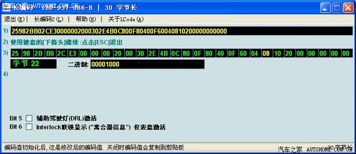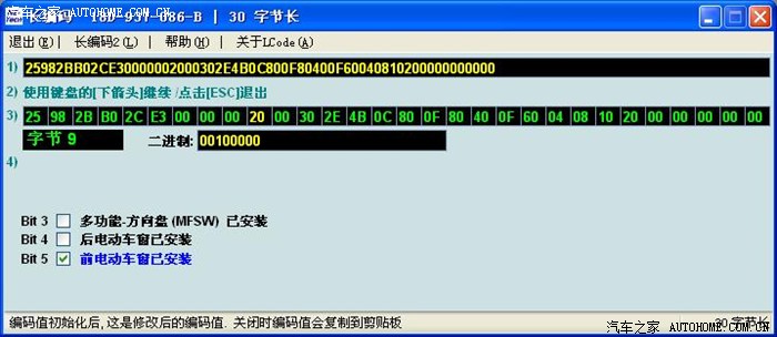 晚上我把原车编码分段粘贴,就是先用原BCM的8个数替换新BCM的,其余的用新BCM编码,接受以后,再用第二个八个数替换。