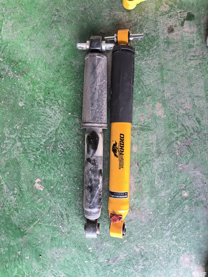 升级的这套犀牛减震从外观上看着就比原车硬郎。并且我还一起加装了25mm的法兰盘,整体车轮一侧抓地面积又增加了2.5厘米,这样车身在行驶中更稳当不说搭配上新的减震器和弹簧,使车辆转弯中倾斜角度更小了。当然最重要的是我这次换的减震是9段软硬可调的,这样在市区内行驶中不会太硬反而舒适度会比原车要好很多,相反在恶劣道路也可以根据自己驾驶感受去调节相应的舒适度。在搭配上我前几天换的越野轮胎,整体车辆外观那是相当霸气,本身就是越野车,这一下改装完毕看着就更霸气威武了。开在大街上回头率相当的奈斯。后续呢再给大家分享升级完以后相关的感受吧。