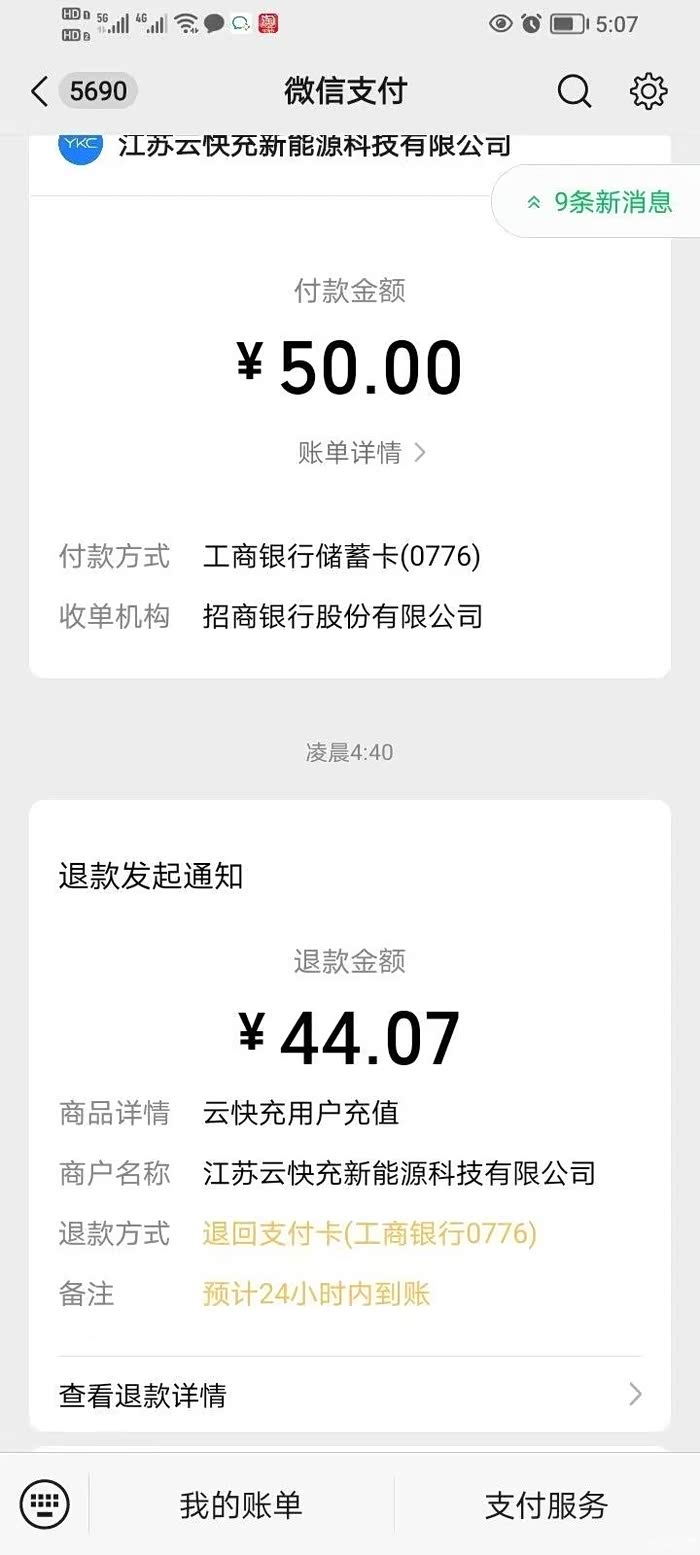 我们家附近2公里有个充电站。这天12.31号凌晨3.45到的充电站,微信扫码充值了50开始充电的,白天我去看过8毛5,晚上一看好便宜服务费和电费一起算4毛8。我这是120标定的,显示剩余33km。