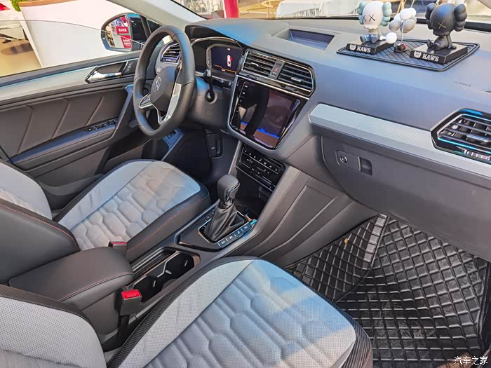 打开途观X的车门发现,内饰还是有熟悉的感觉,中控台 T字形的操作区域层次感明显,中控台设计的空调出风口、显示屏和实体店按键保持了家族车型的辨识度。