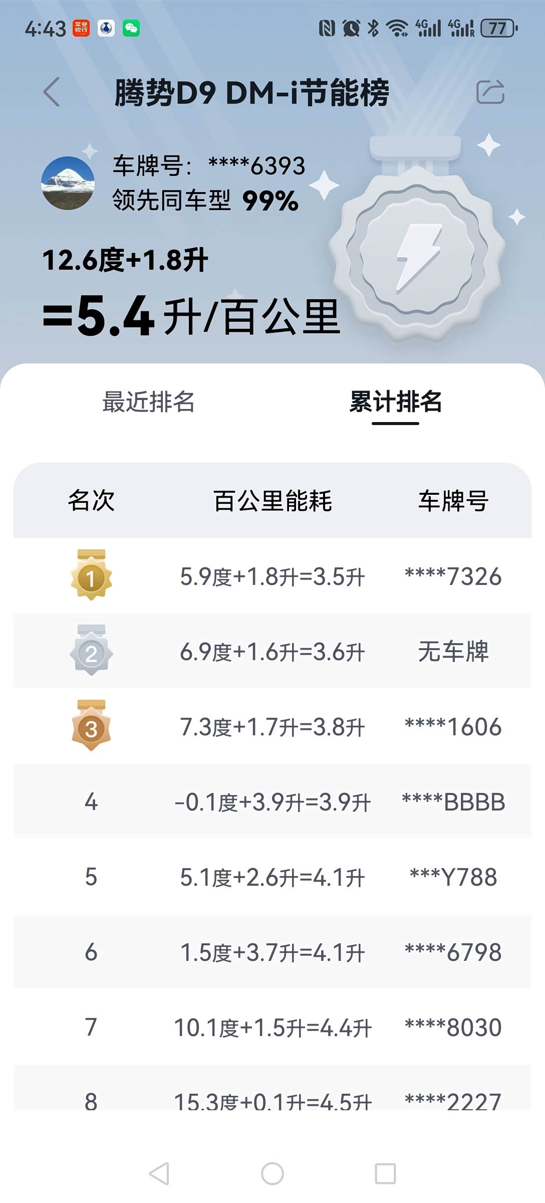 续航是比亚迪三电技术的强项,纯电模式多次在市区开出用90%的电开了200公里(有点后悔没买纯电的D9了),DMI的油混能耗我在高速开时速一般在100-110公里之间,大概是7个油左右,比我原来的21唐DM还省油。