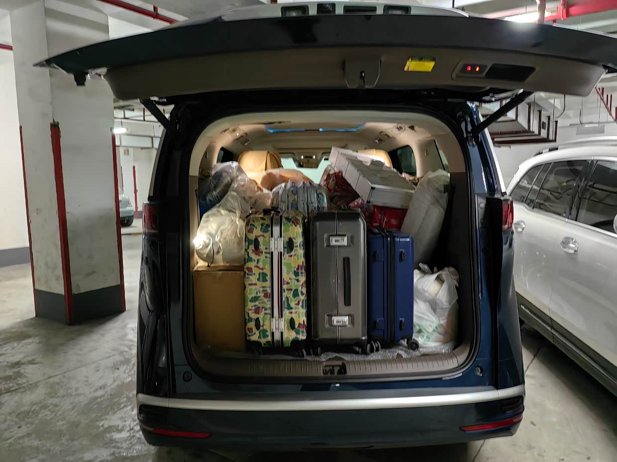 整体空间很大,不愧是中大型MPV,轿车、SUV的空间完全没法比,从主驾到副驾,从第二排到第三排,整体的乘坐空间都是非常优秀的。这款车的储物能力也是非常优秀,坐满了七个人后面还能放下几个行李箱!