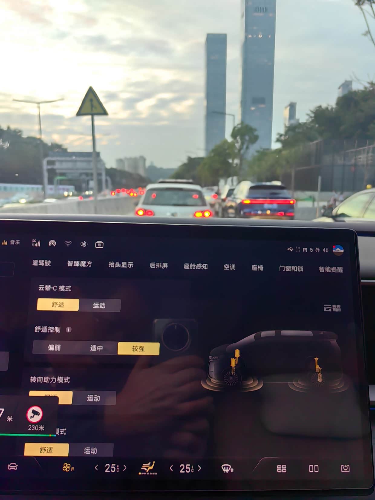 在开上D9之前,没想到一台这么大的MPV居然都能给我带来这么恰到好处的驾驶体验!动力十足,这么大的车驾驶才只需要六秒多,已经超越了很多以加速著称的轿车,无论是在市区还是高速超车都完全没有压力,市区遇到堵车也不慌,低速用电,完全没有发动机的震动和噪音,而且也不用担心油耗。方向盘一圈半就能打满,转弯半径和轿车差不多,掉头一把就能过!刹车的脚感刚开始比较软,在后期OTA升级到云辇C后,底盘就大变样了,无论过弯的侧倾抑制,还是起步刹车的点头抑制,以及过减速带的干脆利落,都可以让这种舒适性成为行业的标杆!建议对D9感兴趣的车友一定要选带云辇C配置的车型。