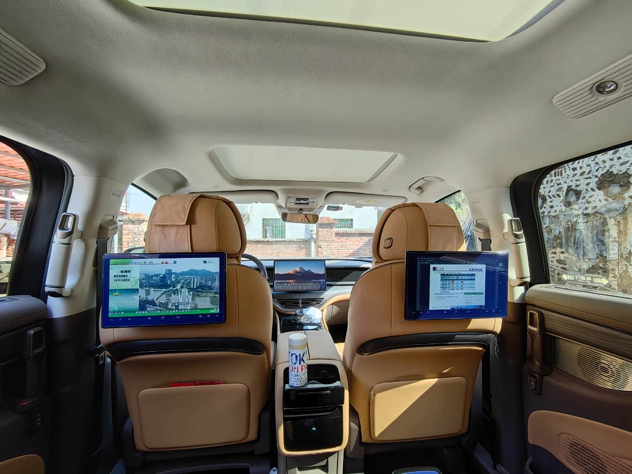 车机的科技感很强,提供透明底盘,自适应巡航,360全景影像,能很轻松的操控这么大的车子,屏幕交互和智能语音交互速度都很快,语音助手可以控制的功能也很多,从车窗、空调、导航、音乐等等都可以用语音助手,非常方便。二排的两个屏幕可以各干各的互不影响
