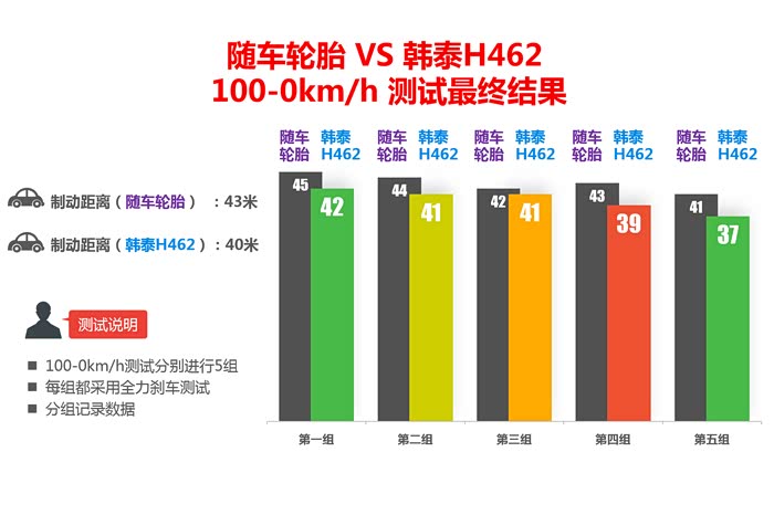 制动距离(韩泰H462):40米左右