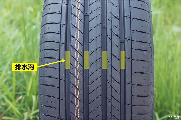 靠外侧的两条沟槽较窄、较浅,有利于提高侧向支撑力。而较宽的中间两条沟槽有利于轮胎通过积水路面时,迅速将积水排出,避免出现水滑效应。