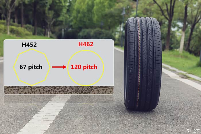 采用优化后的3节距设计,可以降低胎面产生的噪音