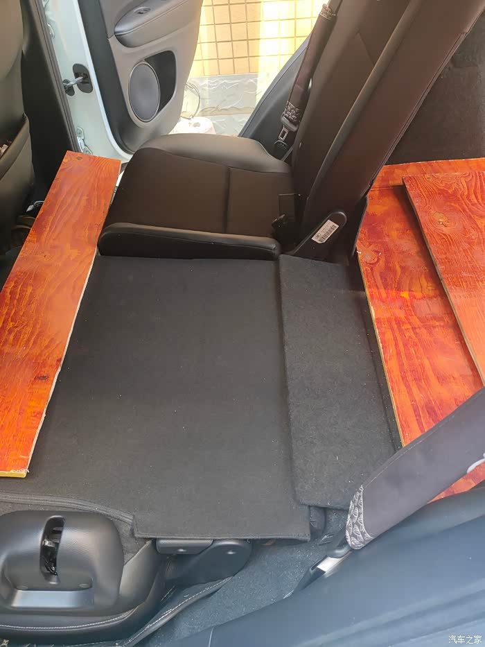 我酷爱户外露营放风,有时候想在车上睡个午觉,相信大家都知道,缤智后排座椅放倒后,看上去貌似很平,其实躺上去中间连接处搁腰,非常不舒服!