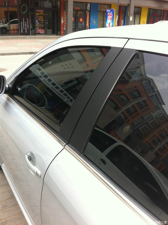 接下来加了四窗亮条,及B柱黑色磨砂贴纸,这两样是原装正品,请4s店师傅帮忙安装。