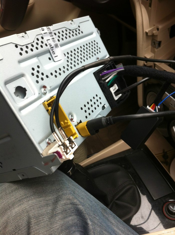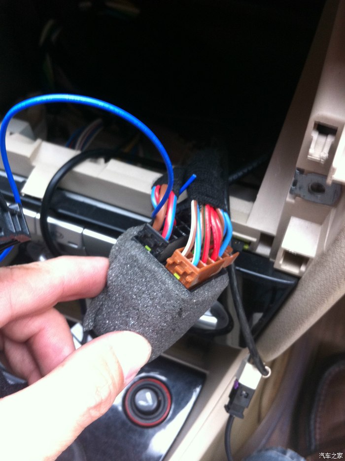 ④接线。注意原车插头内接线柱一多一少,往转接线上插时要对应。AUX白插头只能插在预留的右面。