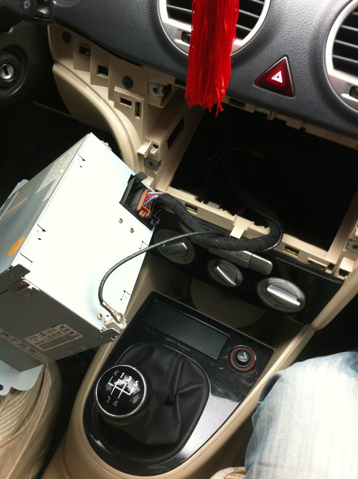 最后决定换中控,其间纠结了很长时间。先是否决了DVD导航,然后是RCD510和RNS315之间的抉择。冷静的思考了一下换中控的目的:增加音源的输入方式,提升音质。相比之下,510是6碟CD,而315为单碟;510音质不如315,但便宜一千多元,够买一个爱欧迪了,也能弥补音质缺失;一开始就不打算在中控装导航,因为不安全,所以315的导航功能对我没有诱惑;屏幕分辨率再高也不如IPAD,所以315的优势不存在了。至于蓝牙、倒车影像、OPS暂时没有加模块。就这样订了一台RCD510,又订了中控面框。