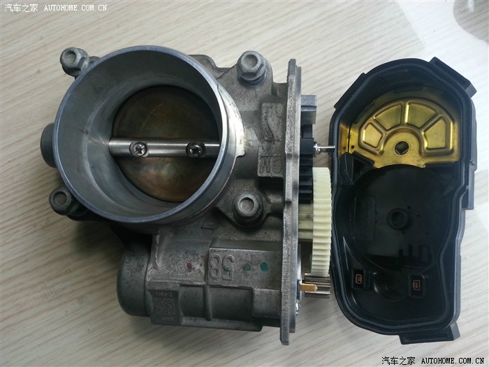 自从我的WW出这个毛病开始,我就在网上关注这个新君威节气门的问题,发现像我这样的问题很多,故障的现象都一样:发动机动力下降,故障灯亮,读故障代码不是节气门位置传感器性能下降,就是位置不对,反正我的车子读出的故障代码也是一样的,具体的代码我当时没有记下来,后来就忘记了。我原来觉得通用的品质应该不错,买车时问过几个老司机,他们说通用的车子小毛病很多,我当时不已为然,但经过这几次的折腾就开始怀疑了,带着这个疑问我把换下来的新君威节气门总成拆了开来(当时是我要求把换下的节气门给我,所以4S店就把换下的给我了)