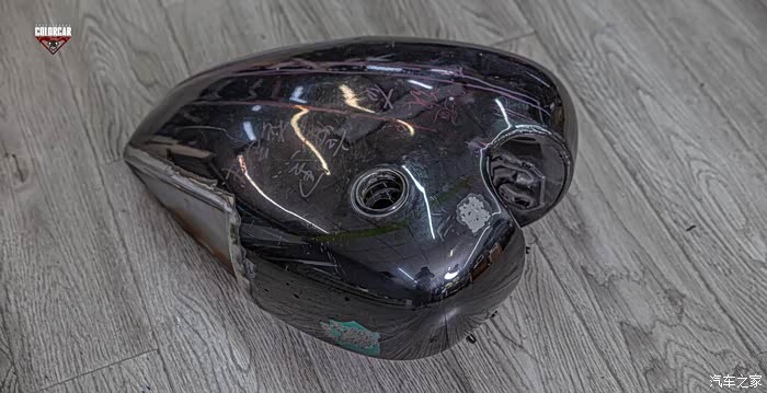 受损摩托车油箱修复拉花喷漆全过程 完美重生··