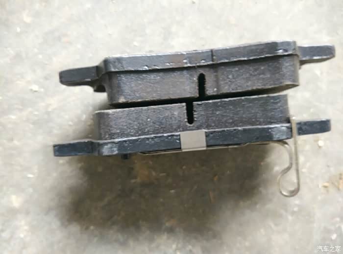 装入新刹车片,有个突出的铁片的放内侧,前后都是这样装。