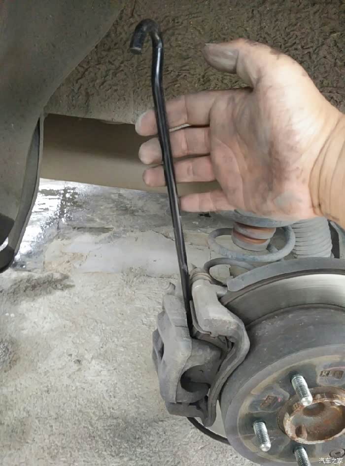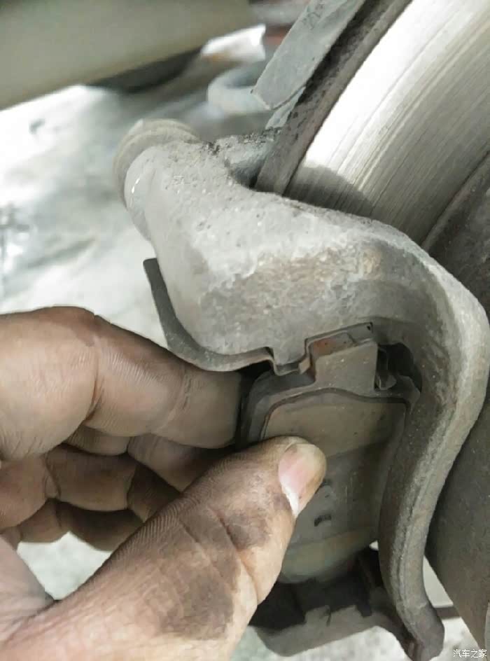 用手往外掰出刹车片,注意啊,刚开过的车千万别用手碰,烫不死你