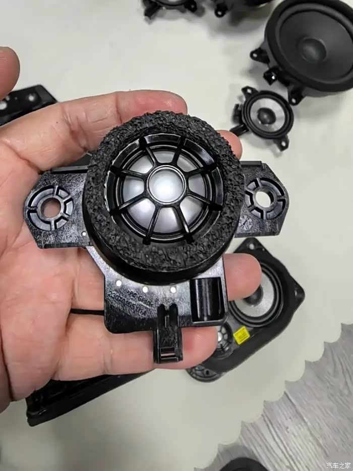 s90智逸新车共10个喇叭,前门三分频高中低各2个,总共6个+后门中音和低音各2个共10个喇叭。