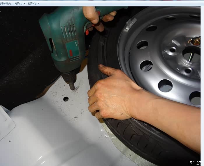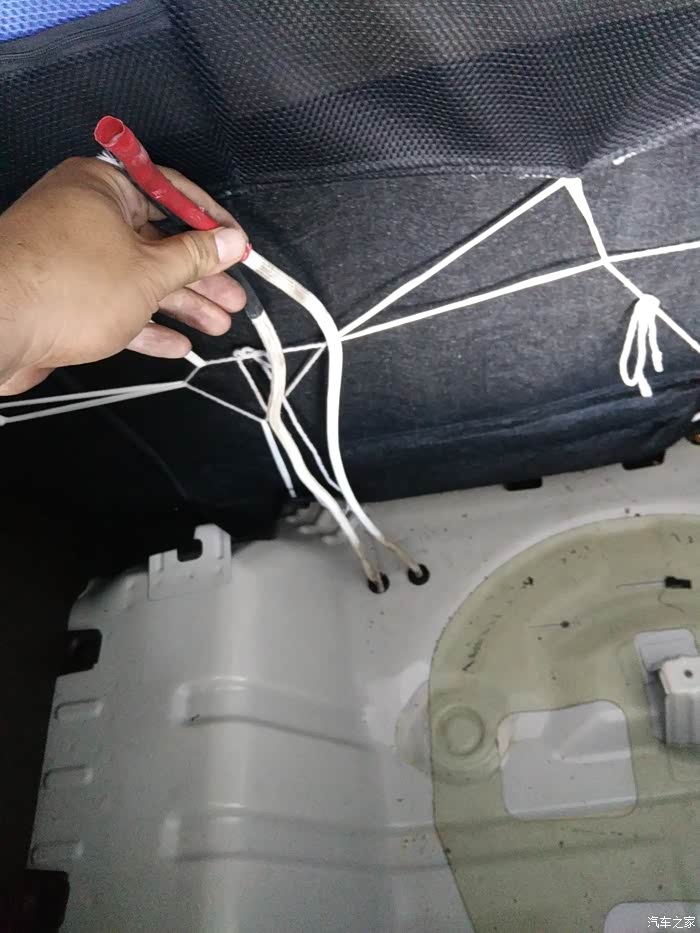 线从后备箱下来,选择最经济最直接的走法,后备箱直接开孔!