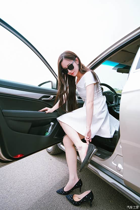 脚上穿的又是高跟鞋,美女连练车也要讲究整体形象啊。但是,好在这次聪明的带了一双专门开车用的平底鞋。