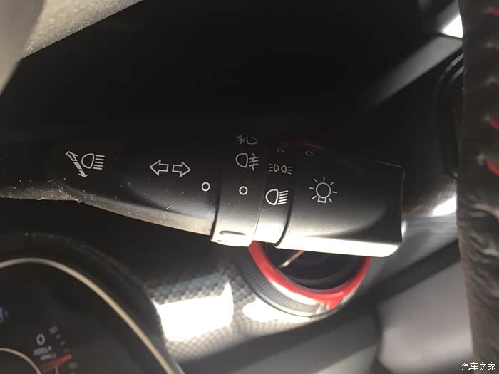 原谅我拍的图他自己翻转了我还转不过来,将就看一下吧,现在开始讲大灯,最烦开远光的所以详细讲一下,最外面拨一共三档,分别是日间行车灯,示廓灯,和大灯,日间行车是关不掉的。中间是前雾灯和后雾灯,后雾灯会弹回来,拨一下看见仪表亮了代表打开,再拨一下代表关闭,远光灯是整个拨杆往前推,仪表显示蓝色的那个标志就是远光,远光闪是往后拨,拨一下闪一下。